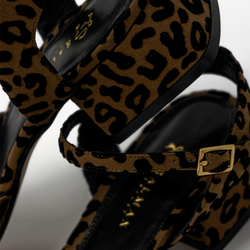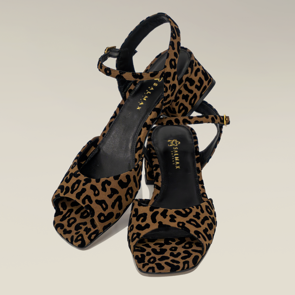 Audacia e stile senza compromessi. Un sandalo dal carattere deciso, perfetto per chi vuole distinguersi con eleganza. Il motivo animalier dona un tocco selvaggio a una silhouette sofisticata e minimalista, mentre il design ergonomico con tacco assicura comfort e stile per tutta la giornata. Realizzato con materiali di alta qualità, con una texture che richiama l’istinto fashion. Ideale per serate glamour, look estivi audaci o outfit casual con personalità.